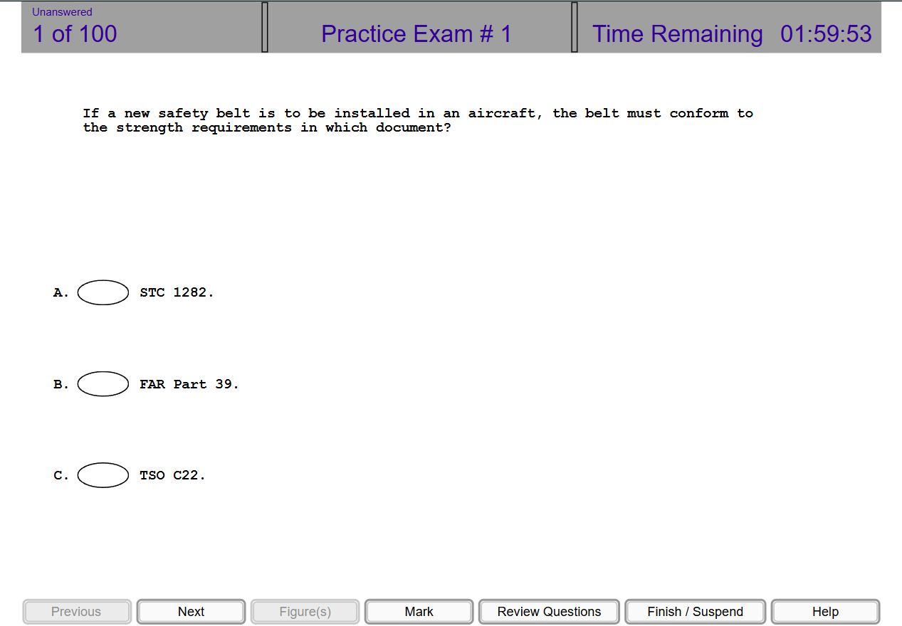 The A&P Test Prep App – Airframe includes three carefully curated practice exams plus unlimited random exams. These practice exams simulate the actual FAA test environment. During each exam, you can: